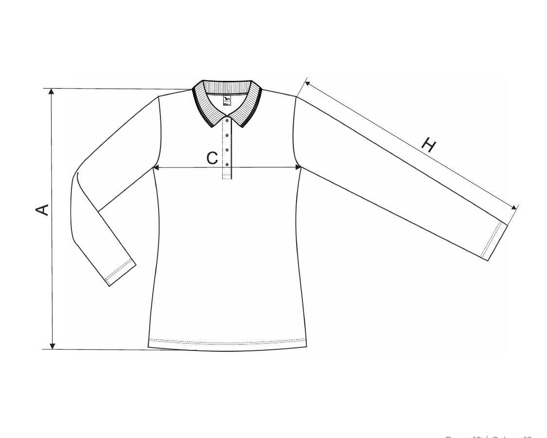 Pique, 65 % pamut, 35 % poliészter (a 12-es szín esetében az anyagösszetétel eltérő lehet – 85 % pamut és 15 % viszkóz)