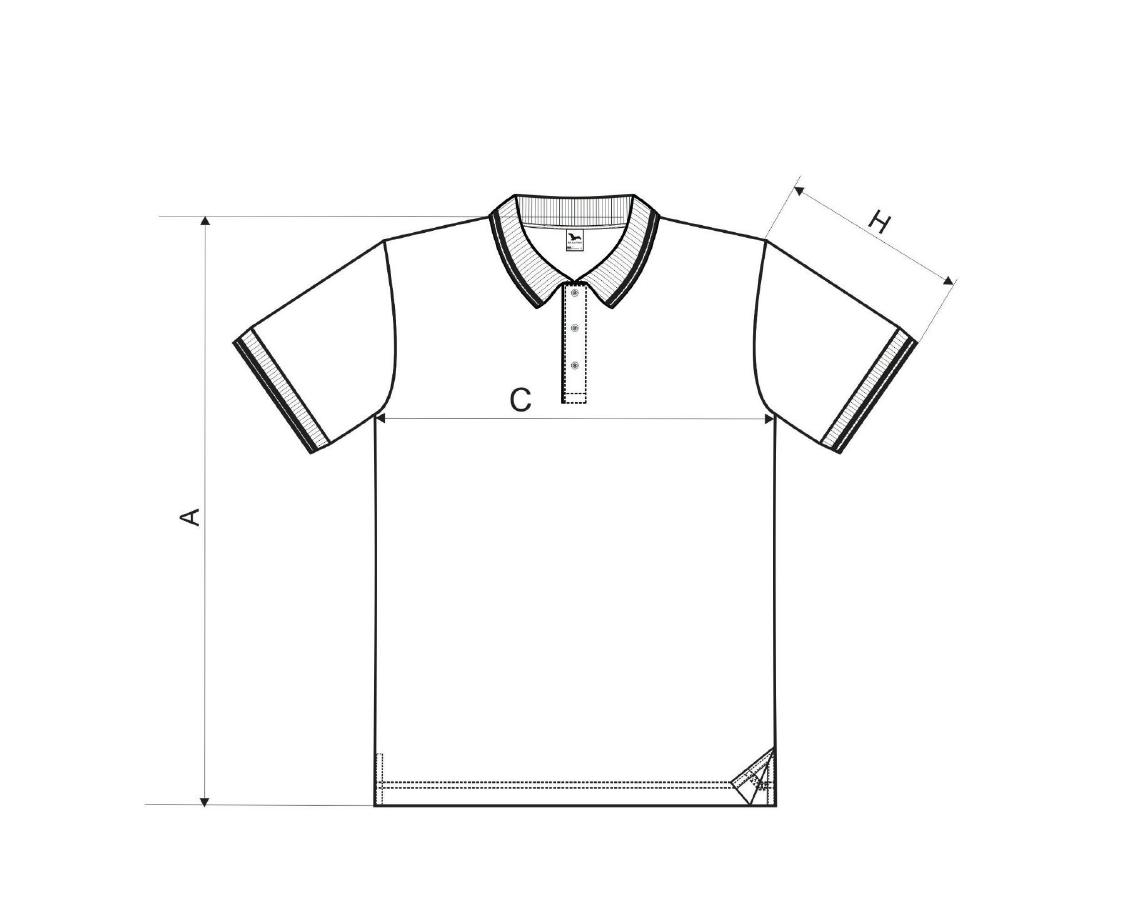Pique, 65 % pamut, 35 % poliészter (a 12-es szín esetében az anyagösszetétel eltérő lehet – 85 % pamut és 15 % viszkóz)