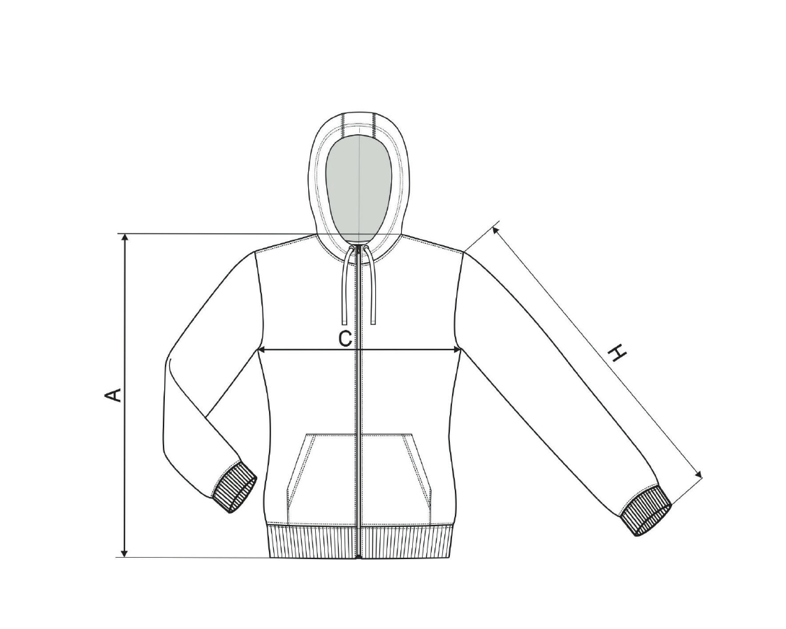 íves szabású, oldalvarrással, fordított cipzár teljes hosszban, zsinórral összehúzható, bélelt kapucni, hátsó nyakrész belső oldala szalaggal, rávarrt kenguru zsebek, 2:2 bordás kötésű szegély és mandzsetták 5 % elasztánnal, kontraszt elemek, bolyhos belső oldal